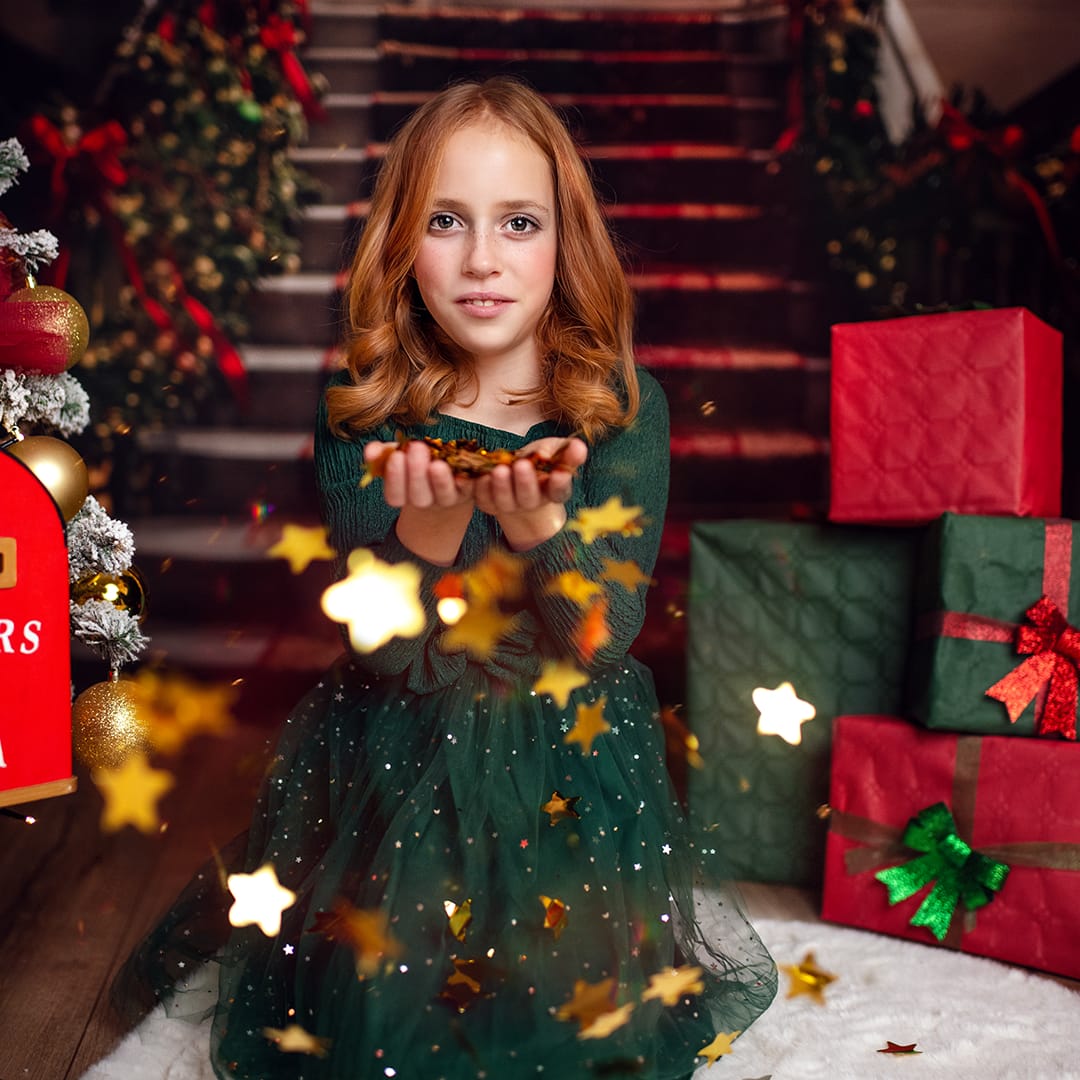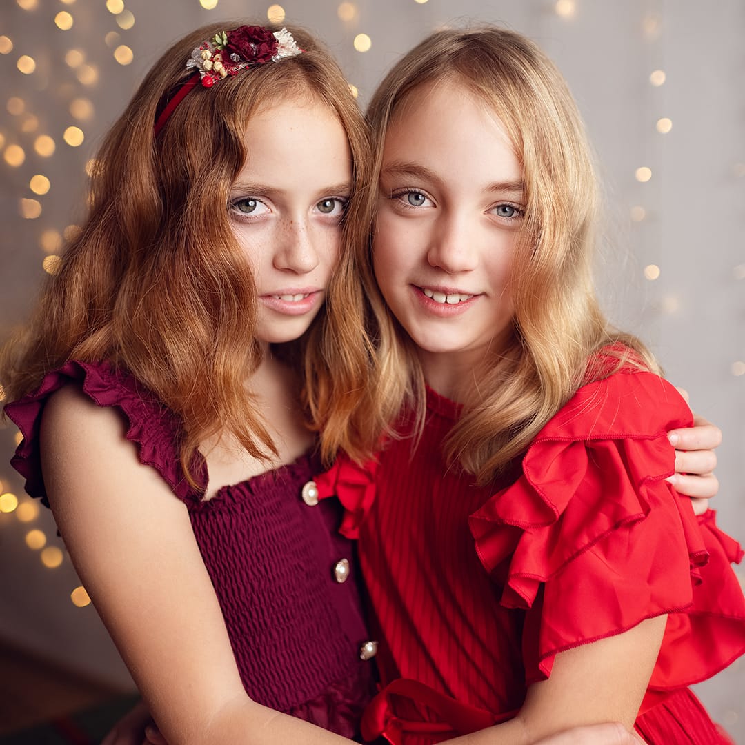 Pro letošní sezónu jsem připravila tmavě červené pozadí, které dodává snímkům nádherné teplé tóny a vytváří pocit pohodlí, intimity a pravé vánoční nálady. Tato barevná kombinace zvýrazňuje přirozené rysy a dělá fotografie harmonické a sváteční.